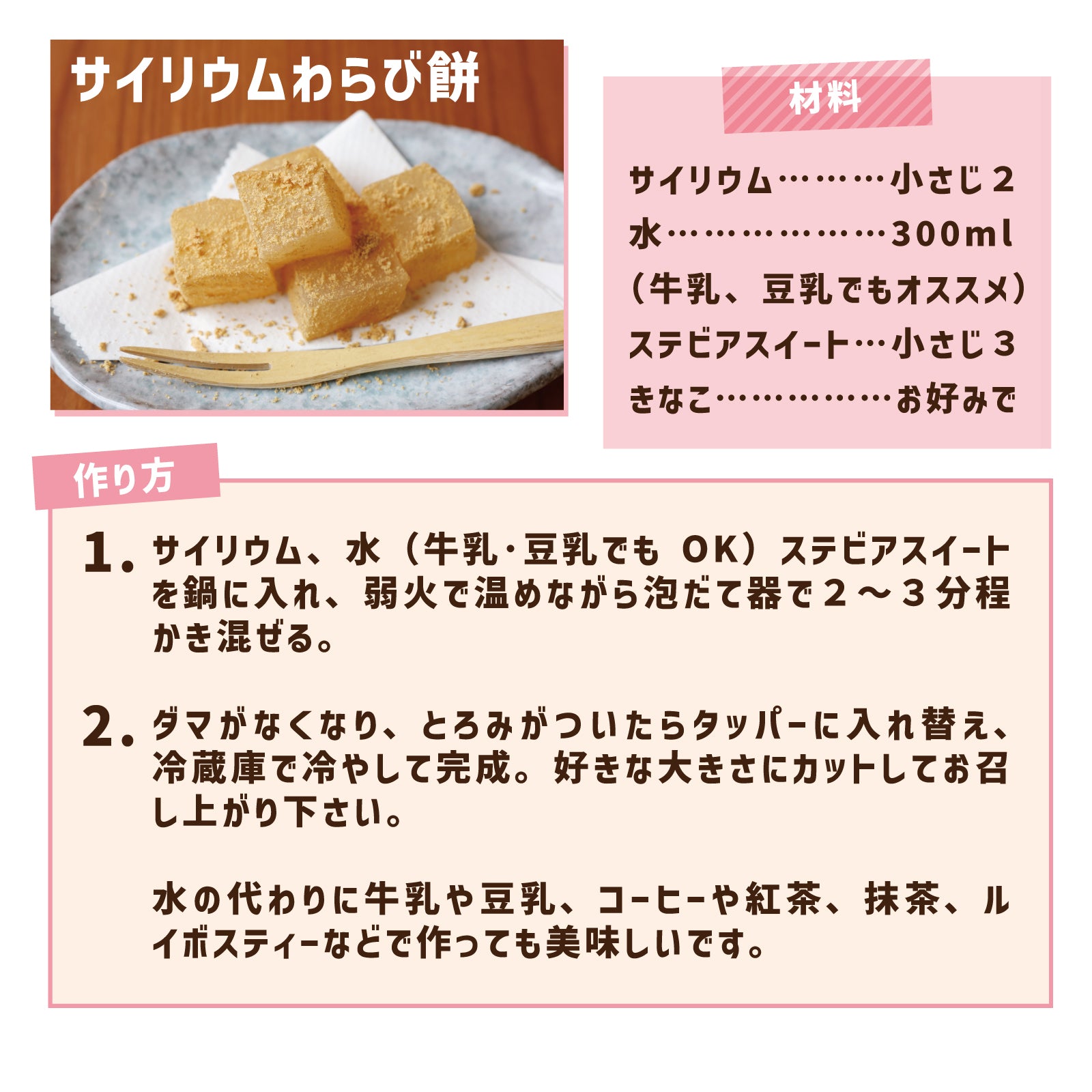・水分を吸って膨らむ性質があるため粉末のまま食べないでください。