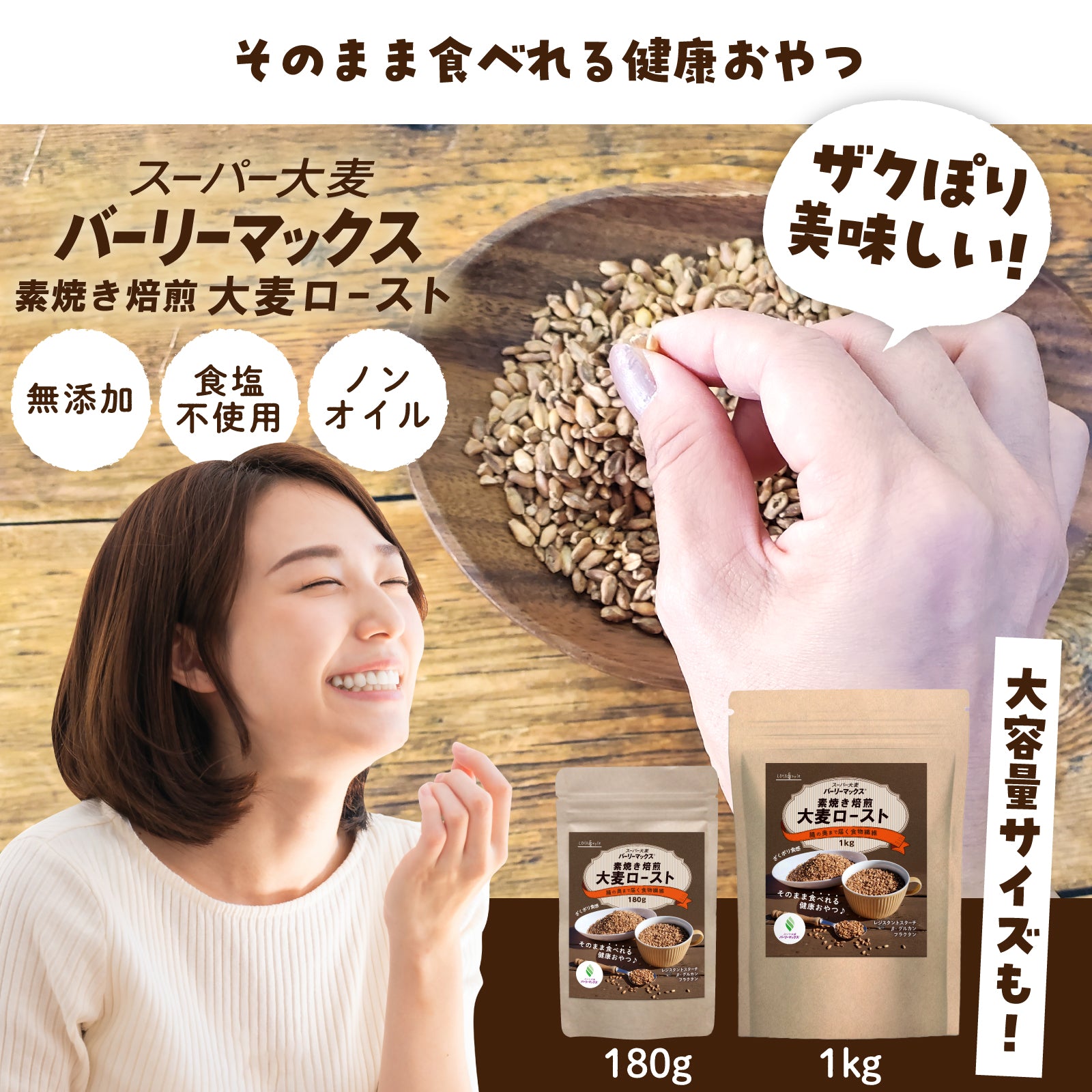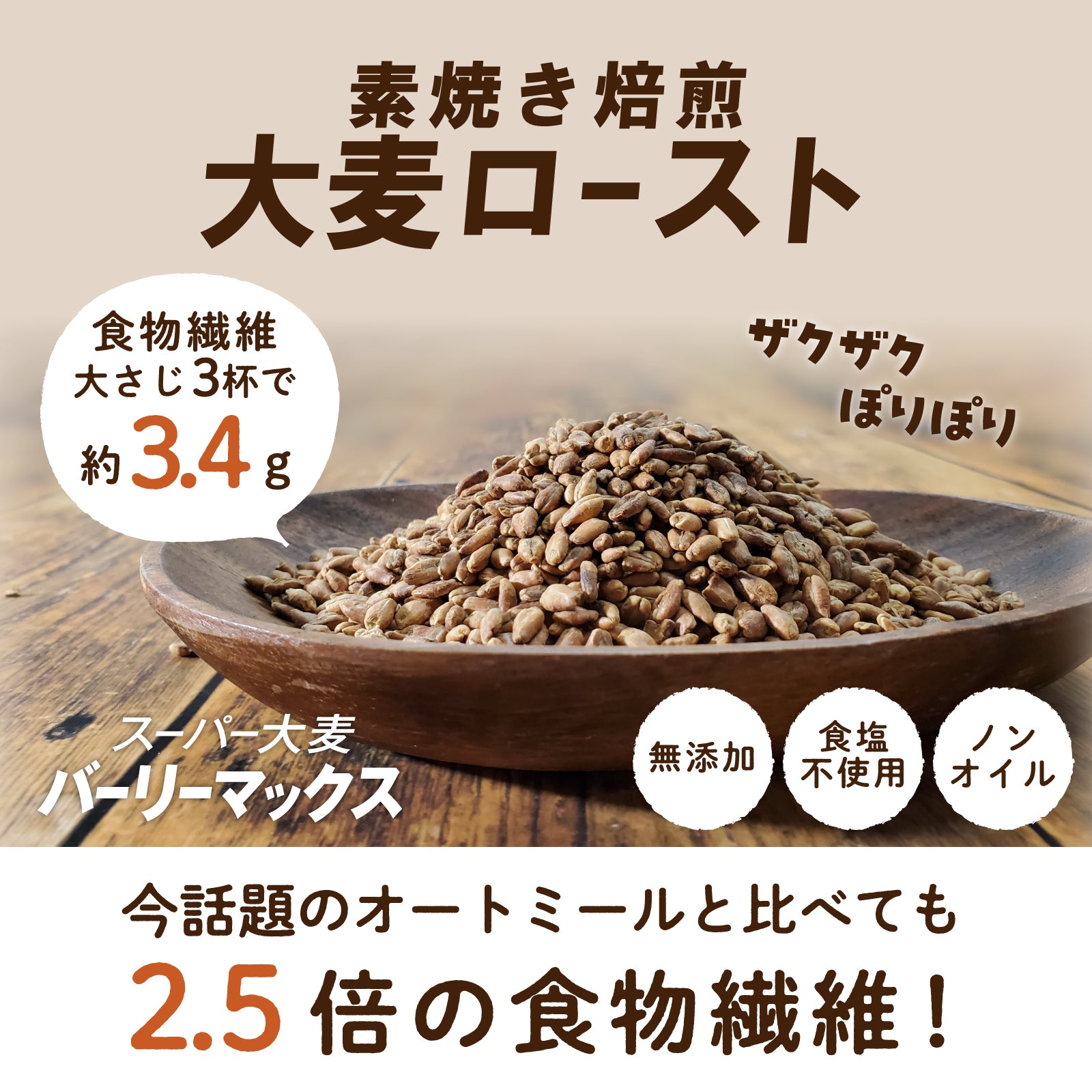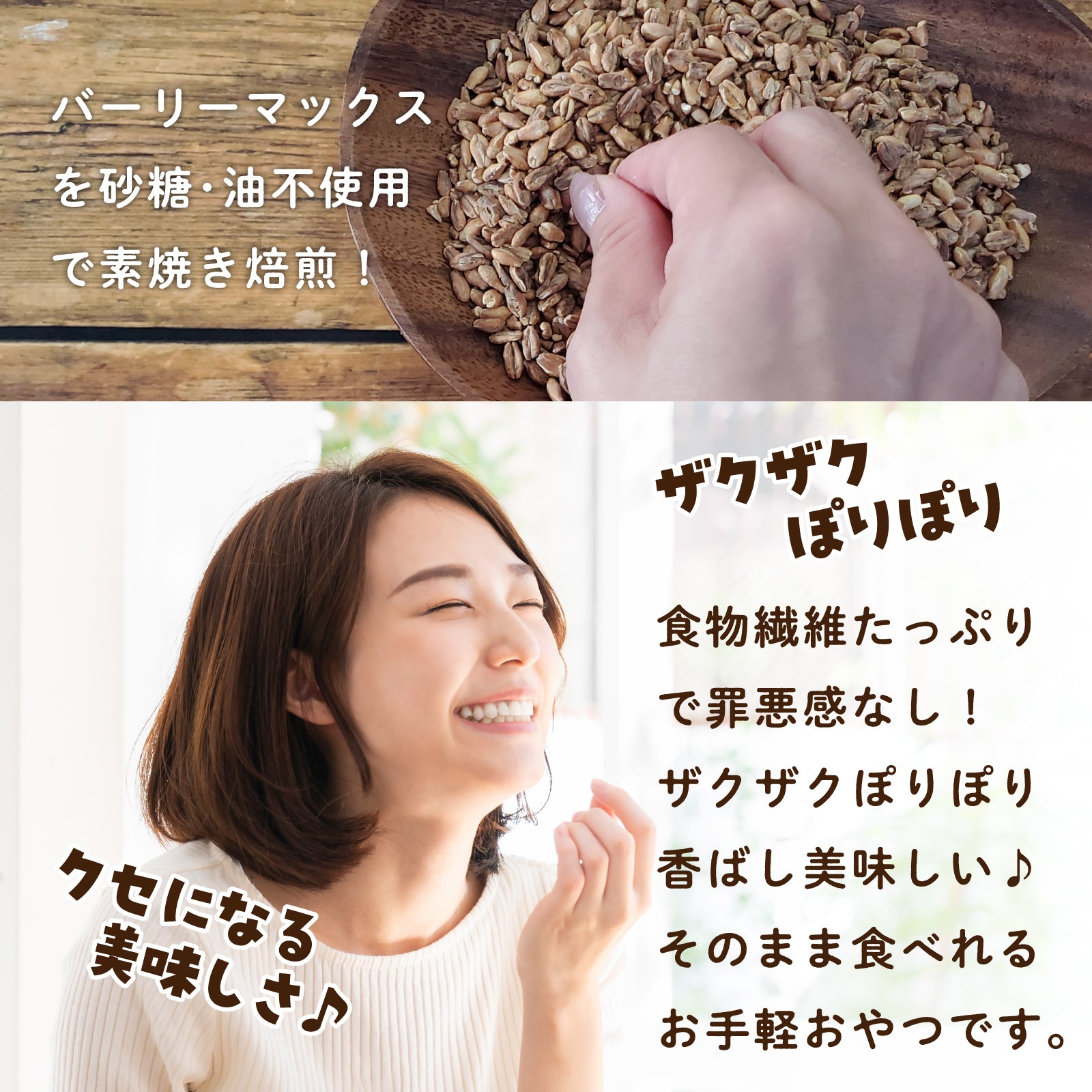バーリーマックス玄麦を素焼き焙煎ローストに!ざくポリ食感がおいしい手軽に食べれる健康おやつです。