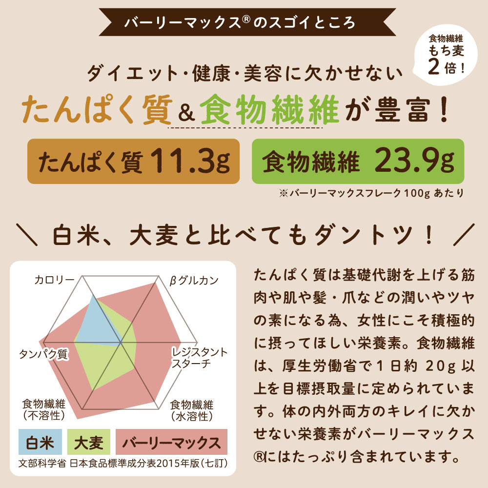 食物繊維量もち麦2倍、オートミールの2.5倍!